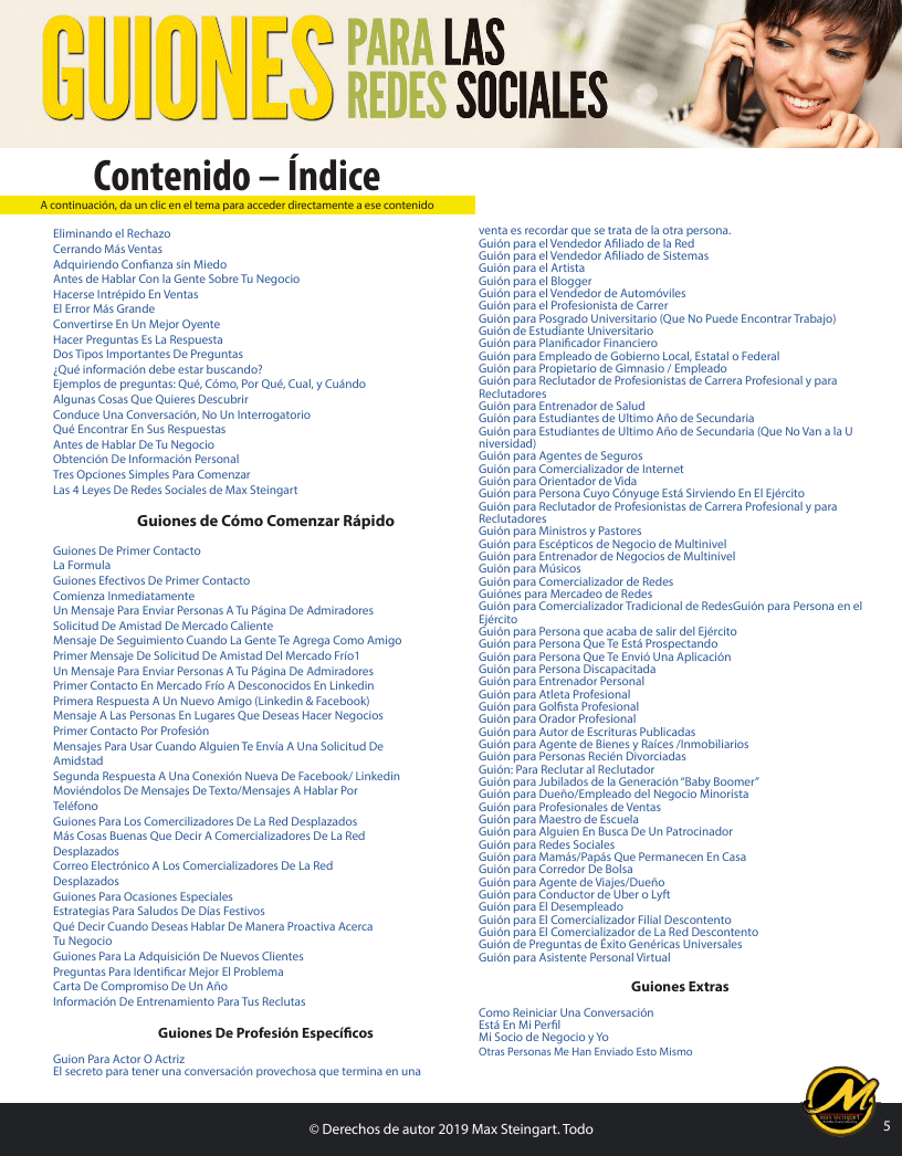 Guiones Para Redes Sociales te proporciona estrategias de ventas comprobadas y probadas en el campo, tácticas de mensajes de texto con plantillas para copiar y pegar, transcripciones y contenido de mensajes precisos que te permitirán hablar con cualquier persona con confianza. Te puedes usar en mensajes privados en cualquier red social, cuando estás hablando por teléfono con un cliente potencial o cuando estás cara a cara con alguien.